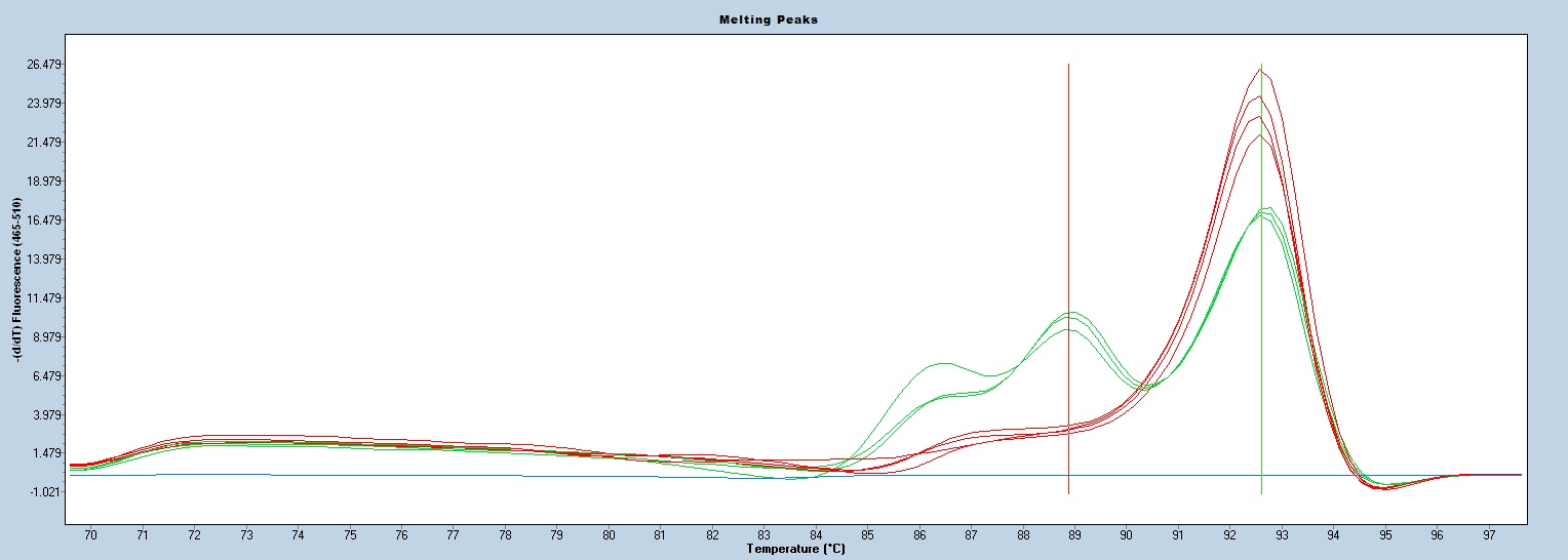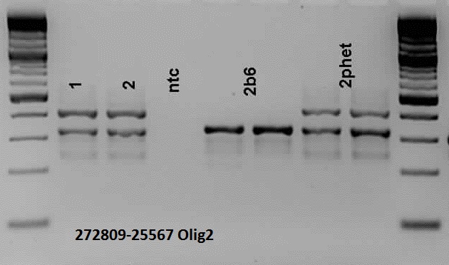 Heterozygote = ~400 bp and 323 bp
