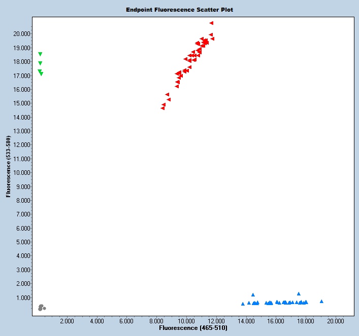 Taqman qPCR protocols are run on a real time PCR instrument. Use an appropriate instrument specific Fluorophore/Quencher combination. The transgene genotype is determined by comparing ΔCt values of each unknown sample against known homozygous and hemizygous controls, using appropriate endogenous references.