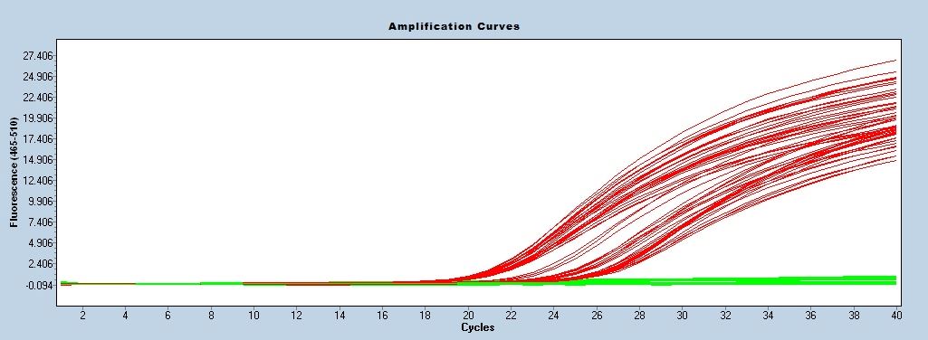 Taqman qPCR protocols are run on a real time PCR instrument. Use an appropriate instrument specific Fluorophore/Quencher combination. The transgene genotype is determined by comparing ΔCt values of each unknown sample against known homozygous and hemizygous controls, using appropriate endogenous references.