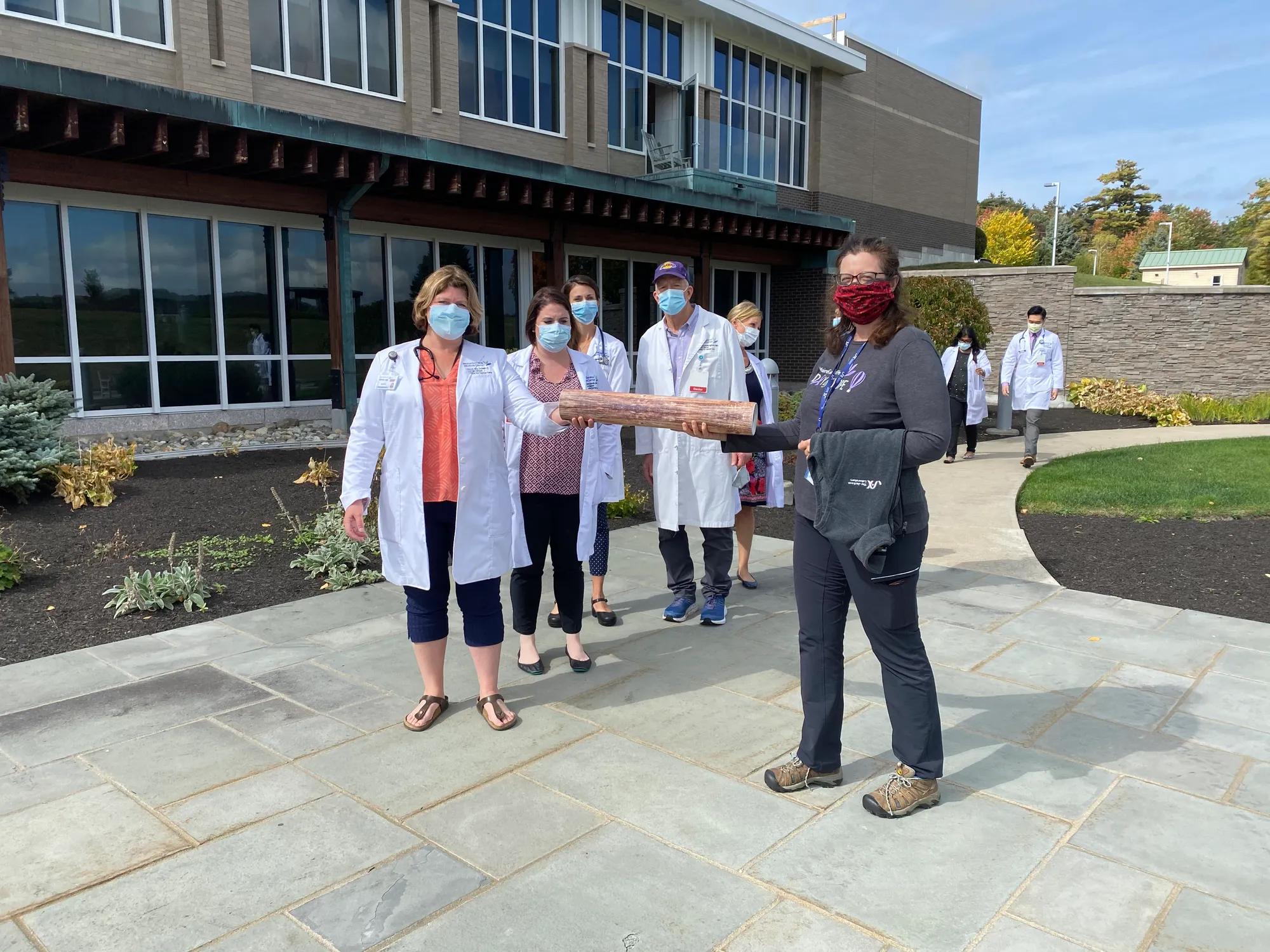 In addition to supporters who walked throughout the greater MaineGeneral Health community, providers and staff members at the Harold Alfond Center for Cancer Care (HACCC) spent 40 hours walking the HACCC Healing Gardens in support of their patients. In tribute, a baton filled with the first names of each person cared for since the HACCC opened its doors in 2007 was continuously carried by the staff during all the hours walked.