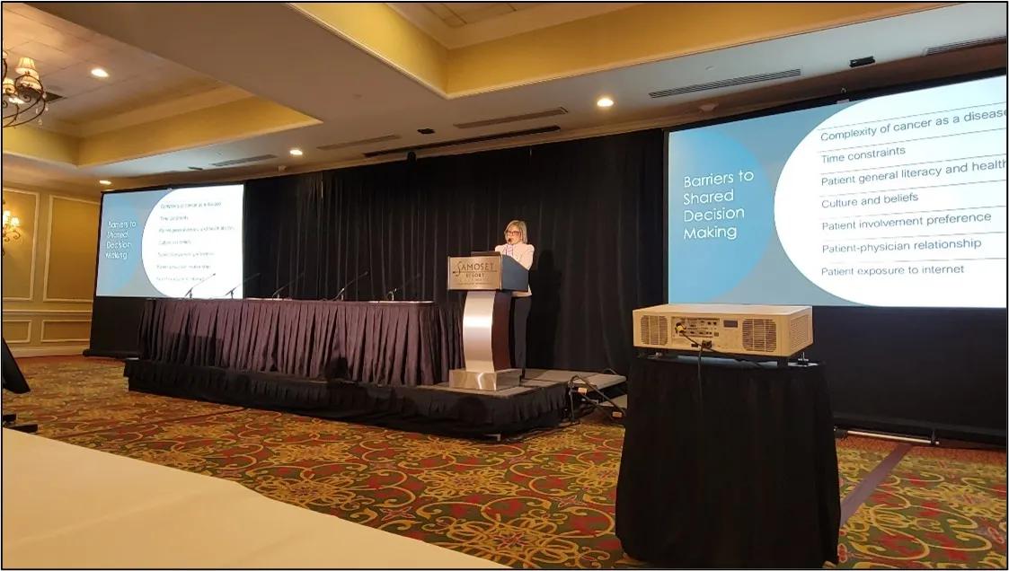 The pursuit of therapies that are toxic to cancer cells can yield treatments that are also toxic for patients, physically and financially. Attention is now being focused on patient experience in the context of targeted therapies. Meghna Trivedi explored the important differences between physician assessments of toxicities and patient-reported outcomes, the latter of which yield more insight into side effects and other therapy impacts. She also discussed the determination of maximum tolerated doses (MTD) during clinical trials and the need to incorporate more data into dose selection, as many MTDs have had to be changed because of subsequent side effect issues after FDA approval. Researcher and cancer patient Barbara Segarra-Vazquez provided a patient perspective for cancer treatment, advocating for shared decision making between health care providers and patients to help determine what is actually best for the patient. There are barriers, including disease and treatment complexity, time pressures, health literacy and more, especially with the advent of targeted therapies based on molecular data. But patients need to understand how the therapies work and know the options available to them.