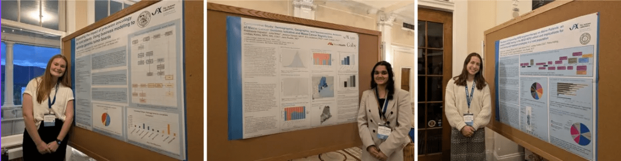 We were proud to showcase the outstanding contributions of our MCGI interns — Kassidy Plummer, Riddhavee Kapadia, and Emma Crum — at the Northern New England Clinical Oncology Society Annual Meeting held in November. These three students presented their impactful research through poster sessions.