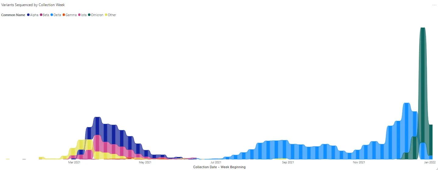 The data are organized by the month that the sample was collected, starting from the first full month in January 2021. It is important to note that not all samples positive for SARS-CoV-2 are sequenced. Many samples were selected for sequencing based on pre-screening for potential variants of concern based on targeted genotyping assays. Since not all samples are sequenced, the information presented is incomplete and does not represent all potential COVID-19 cases caused by variant strains