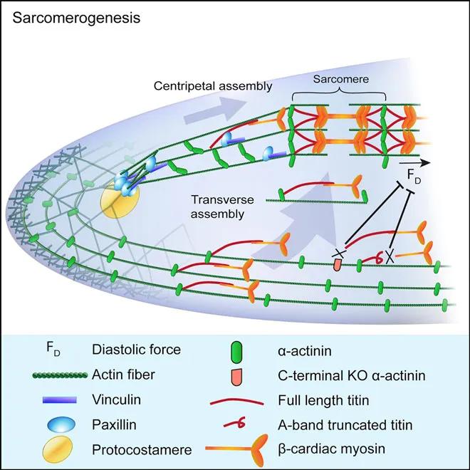 Muscle function is derived from specialized cells that contain further specialized sub-structures known as sarcomeres. High school biology covers the familiar actin/myosin mechanisms within the sarcomeres that lead to muscle function, including contraction and relaxation. But the processes through which human sarcomeres form, and the multiple genes and proteins involved, remain less well defined. The assembly mechanisms are of particular importance in the heart, as defects in cardiomyocytes and cardiac sarcomere development can result in severe adverse effects, including cardiomyopathies.