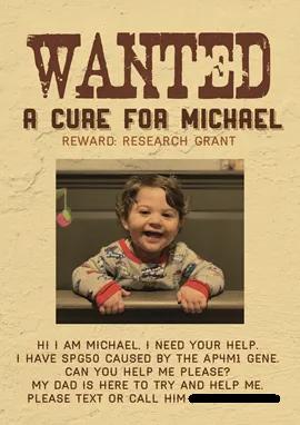 “I went in cold,” Pirovolakis explains, “I didn’t know anybody there, so I put up ‘Wanted’ posters with my son's face on them and my information, asking for anyone with any information about SPG50 to contact me. I setup coffee meetings with the FDA, NIH, Gene Therapy companies, and world experts in the field, anyone that would speak with me.
