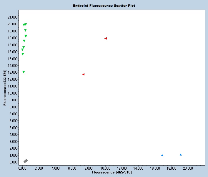 Taqman qPCR protocols are run on a real time PCR instrument. Use an appropriate instrument specific Fluorophore/Quencher combination. The transgene genotype is determined by comparing ΔCt values of each unknown sample against known homozygous and hemizygous controls, using appropriate endogenous references.