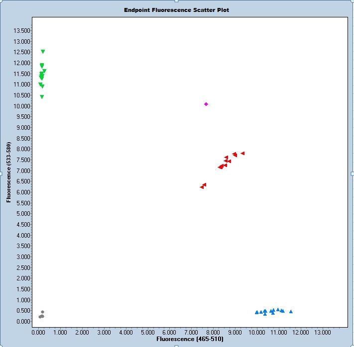 Taqman qPCR protocols are run on a real time PCR instrument. Use an appropriate instrument specific Fluorophore/Quencher combination. The transgene genotype is determined by comparing ΔCt values of each unknown sample against known homozygous and hemizygous controls, using appropriate endogenous references.