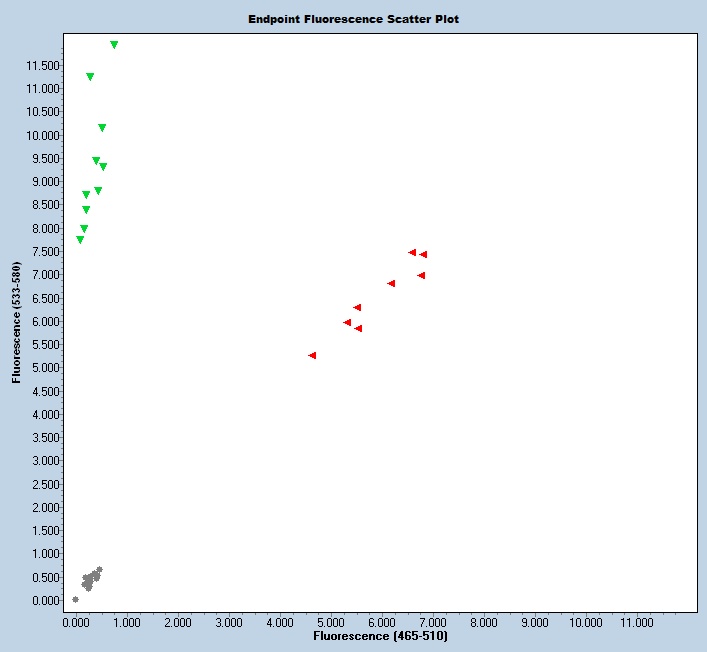 Taqman qPCR protocols are run on a real time PCR instrument. Use an appropriate instrument specific Fluorophore/Quencher combination. The transgene genotype is determined by comparing ΔCt values of each unknown sample against known homozygous and hemizygous controls, using appropriate endogenous references.