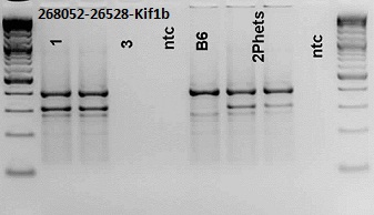 Heterozygote = ~310 bp and 399 bp - There is a very light non-specific at ~290