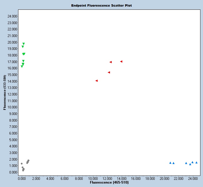 Taqman qPCR protocols are run on a real time PCR instrument. Use an appropriate instrument specific Fluorophore/Quencher combination. The transgene genotype is determined by comparing ΔCt values of each unknown sample against known homozygous and hemizygous controls, using appropriate endogenous references.