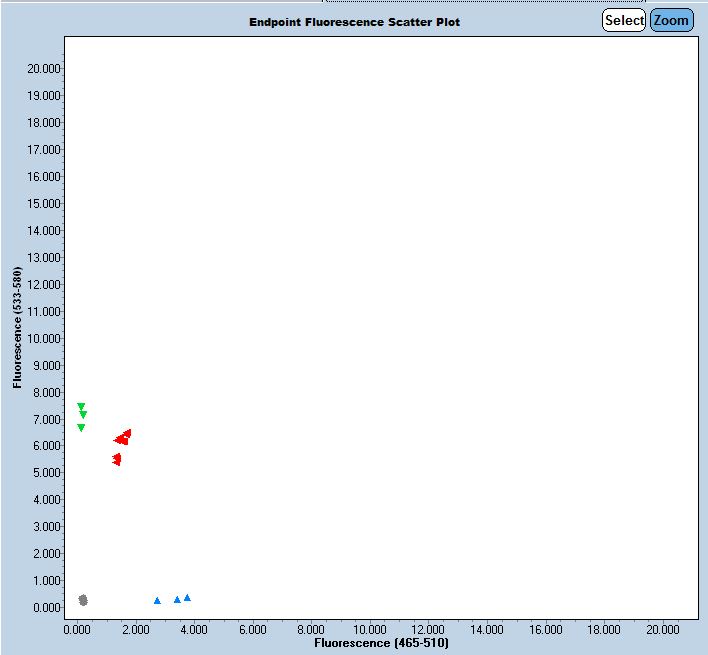 Taqman qPCR protocols are run on a real time PCR instrument. Use an appropriate instrument specific Fluorophore/Quencher combination. The transgene genotype is determined by comparing ΔCt values of each unknown sample against known homozygous and hemizygous controls, using appropriate endogenous references.