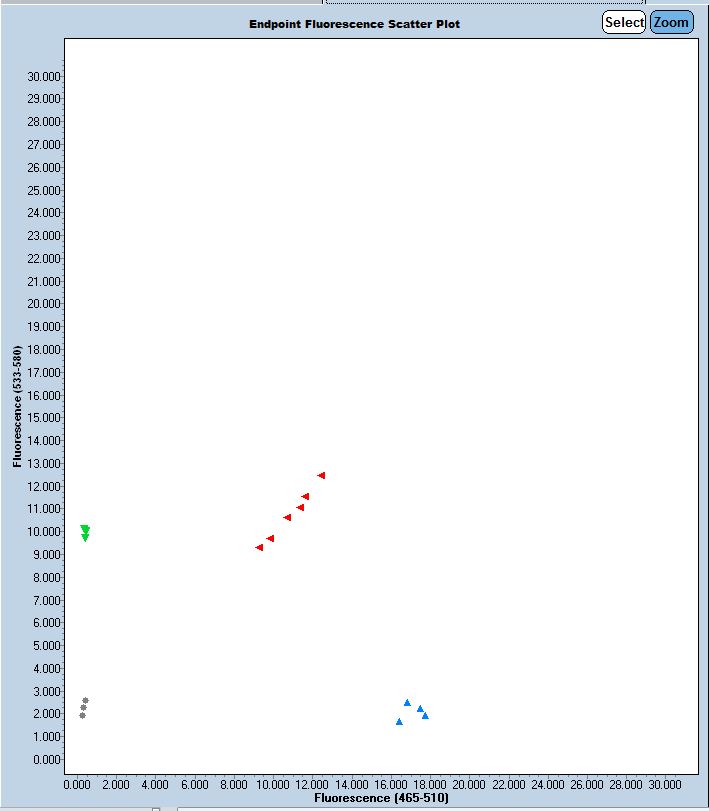 Taqman qPCR protocols are run on a real time PCR instrument. Use an appropriate instrument specific Fluorophore/Quencher combination. The transgene genotype is determined by comparing ΔCt values of each unknown sample against known homozygous and hemizygous controls, using appropriate endogenous references.