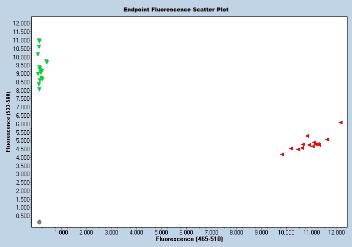 Taqman qPCR protocols are run on a real time PCR instrument. Use an appropriate instrument specific Fluorophore/Quencher combination. The transgene genotype is determined by comparing ΔCt values of each unknown sample against known homozygous and hemizygous controls, using appropriate endogenous references.