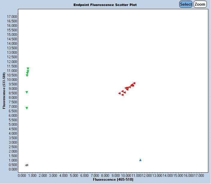 Taqman qPCR protocols are run on a real time PCR instrument. Use an appropriate instrument specific Fluorophore/Quencher combination. The transgene genotype is determined by comparing ΔCt values of each unknown sample against known homozygous and hemizygous controls, using appropriate endogenous references.