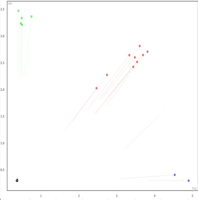 | 43390 | Fluorophore-2 | CCT CGT GGA CTC CCT GTG | Quencher-2 | MUT Probe |