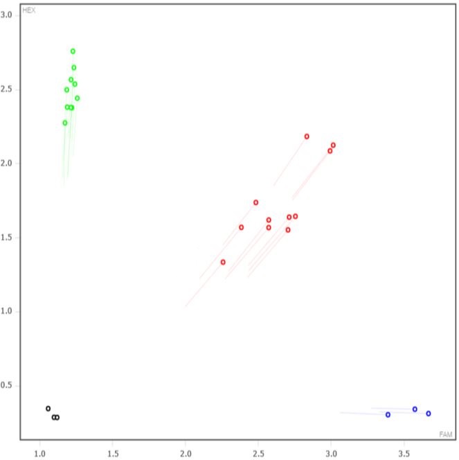 | 44107 | Fluorophore-2 | CAC CCC TAA GTT CTT GCT TTA TAG C | Quencher-2 | MUT Probe |