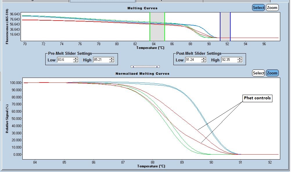 Heterozygote = ~260 bp and 221 bp