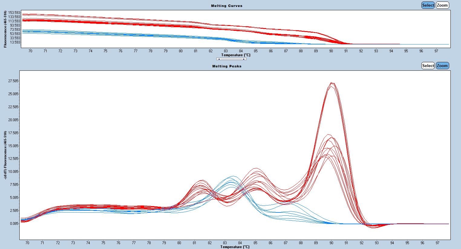 Heterozygote = 326 bp and 402 bp