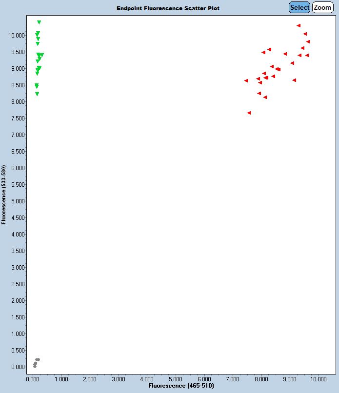 Taqman Probe/Endpoint protocols use a different analysis than qPCR. Please see your equipment manual for more information about Taqman endpoint analysis setup.
